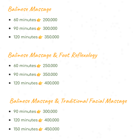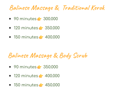 The techniques used include pressure, exploration, and oiling. But broadly speaking, Balinese spa uses medium pressure massage with complete pressure points. Starting from the feet to the head.